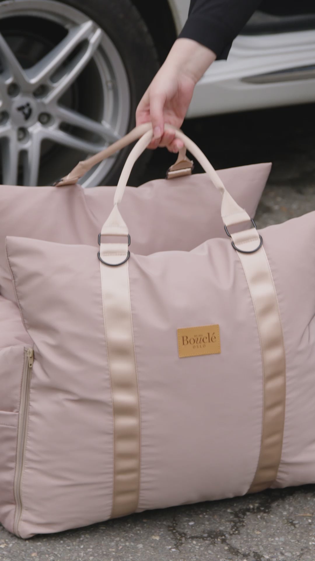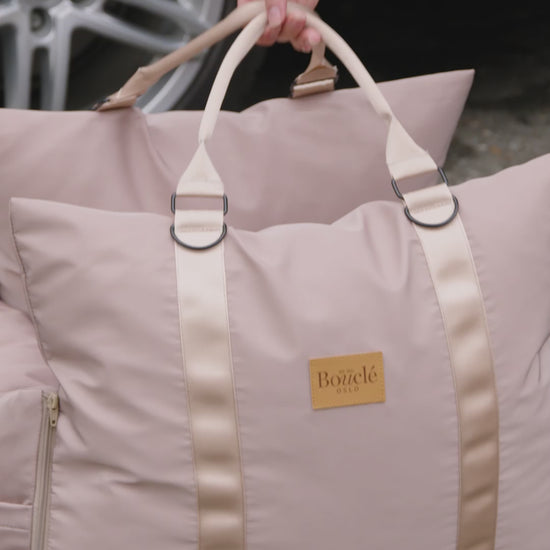 Den vendbare puten lar deg velge mellom myk fuskepels og glatt stoff, og bærestroppene gjør den enkel å ta med seg inn. Den er også nydelig som en liten seng hjemme – og enkel å rengjøre med en fuktig klut.