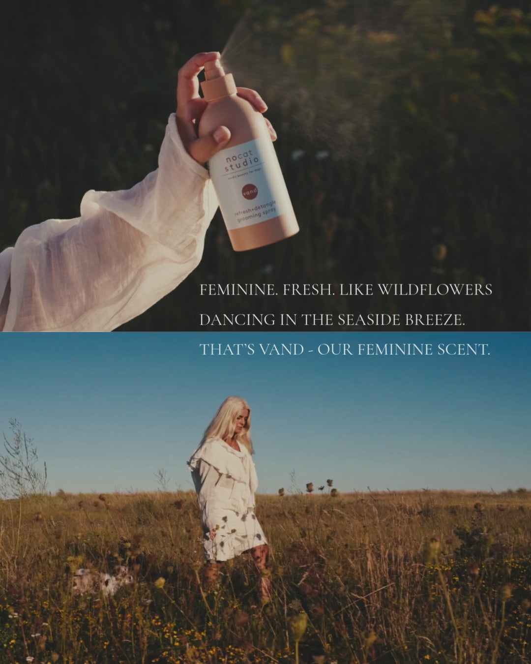 Refresh + Detangle fra Nocat Studio er en supergod groomingspray. Den er mild, PH-balansert og inneholder kun organiske og naturlige ingredienser. Den gjør flokene lettere å gre ut etter bad eller når du ønsker å friske opp pelsen. Sprayen med lukten "vann" har en frisk, behagelig og ren lukt av duftene rose, musk og jasmin.